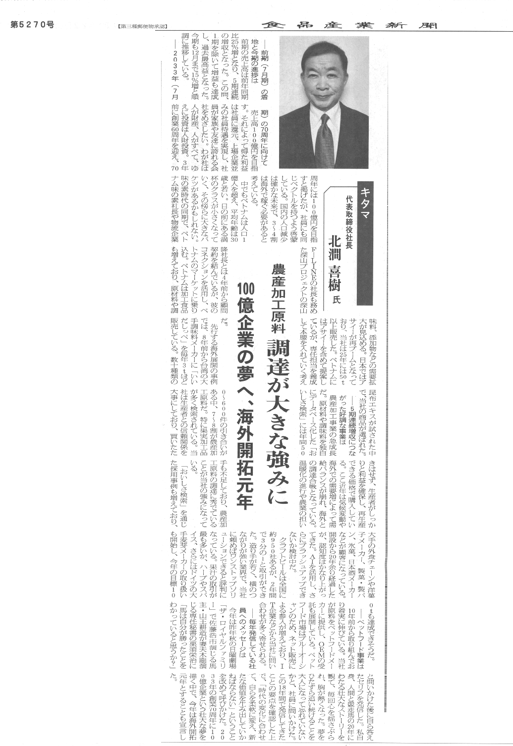 食品産業新聞に掲載されました。